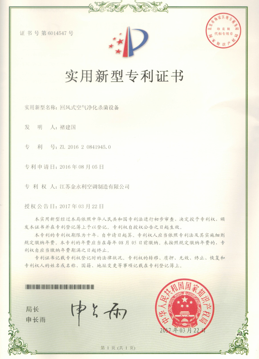 江蘇金永利空調制造有限公司創建于1988年,技術力量雄厚,是生產凈化設備的專業廠家。公司連續八年被評為“生合同,守信用”企業、被省科學技術廳評為“江蘇省高新技術企業”、連續六年被江蘇國際咨詢公司評為“AAA級資信企業”、被泰州市委、市政府命名為“雙文明單位”、被靖江市委、市政府命名為“靖江市雙文明單位”、“靖江市科技進步先進企業”、“靖江市五星達標企業”、“市屬標兵企業”之一。 ......